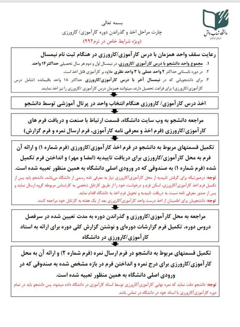 چارت مراحل اخذ و گذراندن دوره کارآموزی/کارورزی (ویژه شرایط خاص در ترم 992)