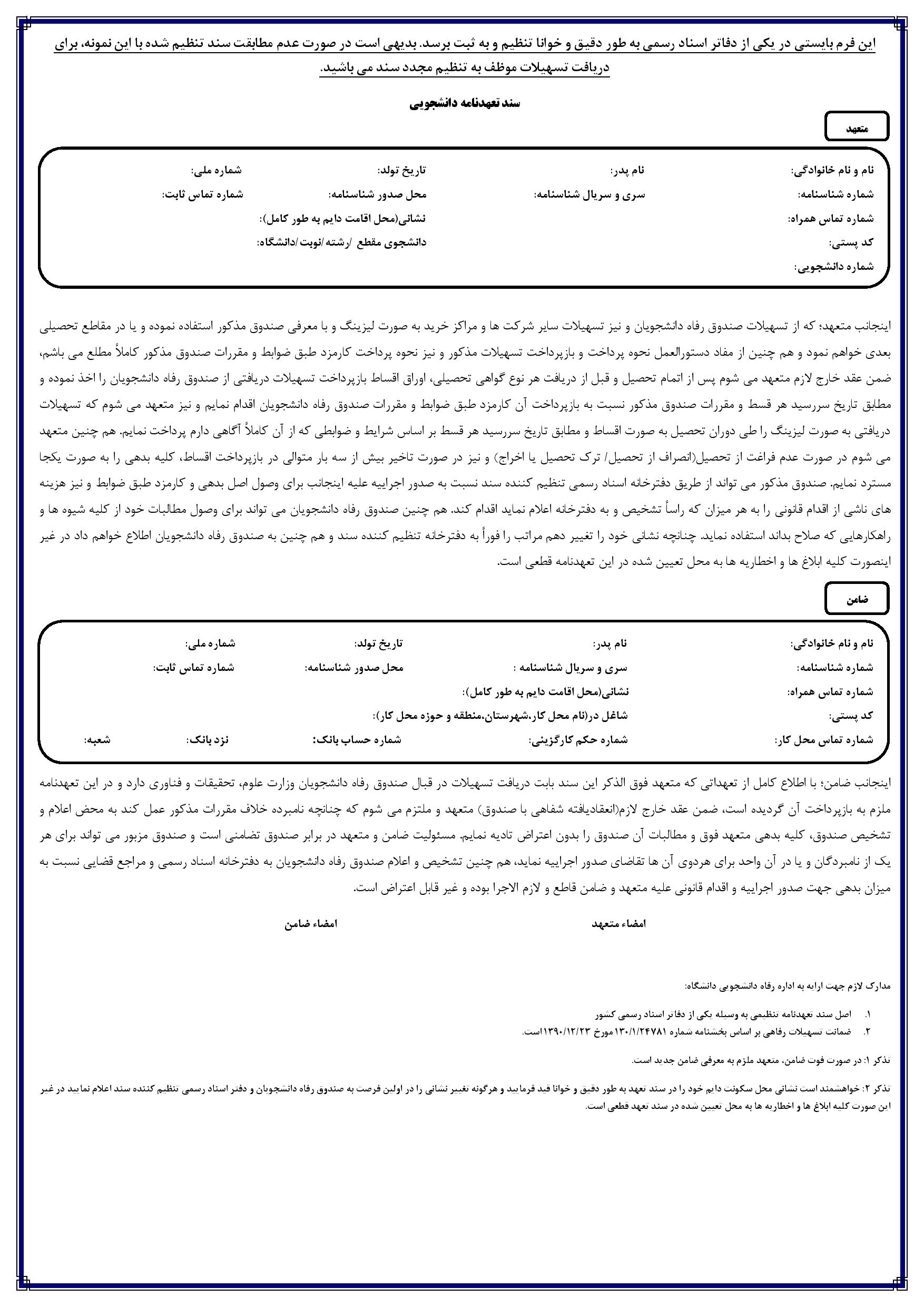 زمان بازپرداخت تسهیلات دریافتی، پس از فراغت از تحصیل مطابق بمقررات بازپرداخت وامهای صندوق رفاه دانشجویان خواهد بود.
