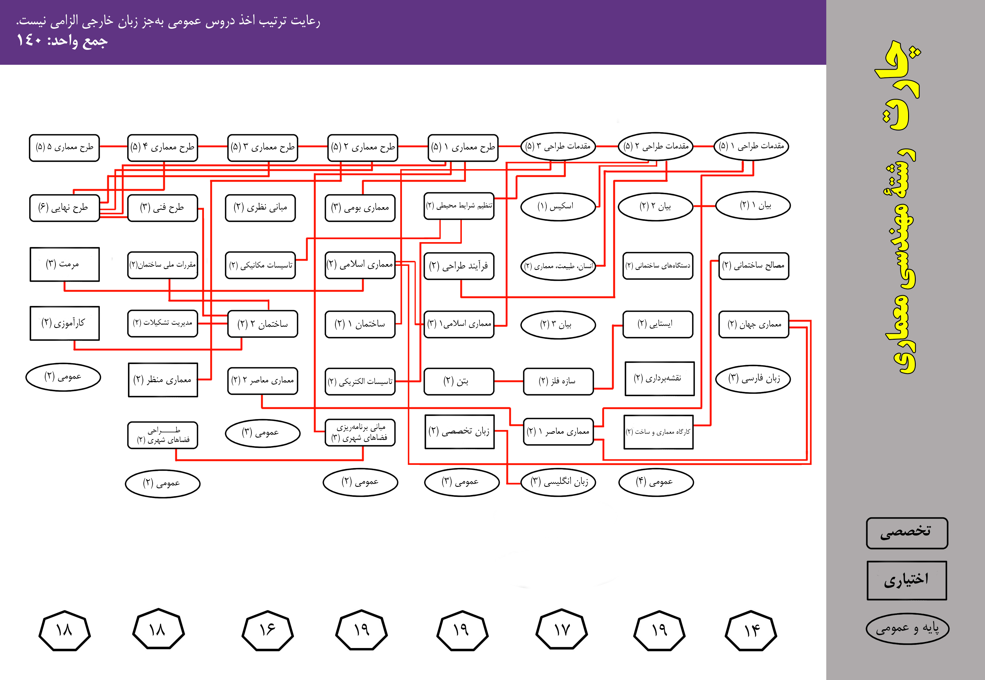 چارت رشتهی مهندسی معماری برای دانشجویان ورودی ۹۶ به بعد